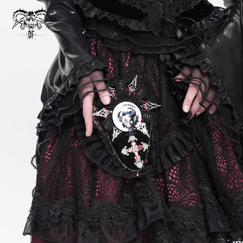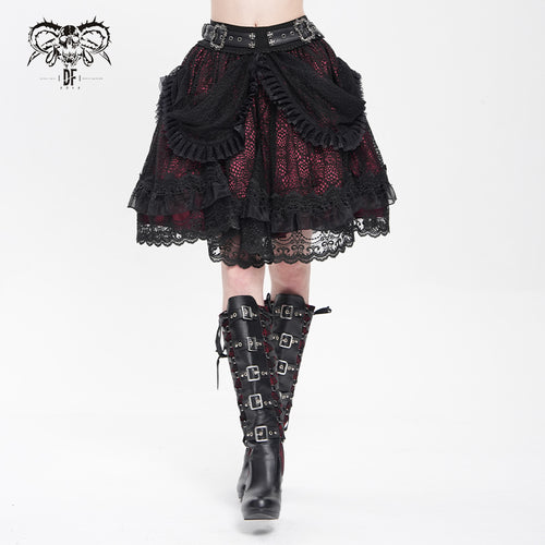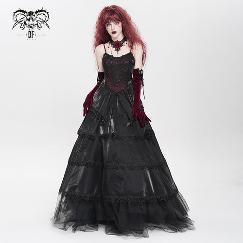 SKT24502 Red floral Lace Long Sleeve Gothic Dress
