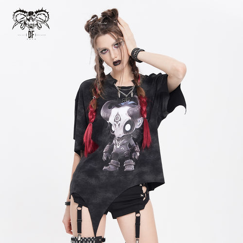 TT298 Tie-dye flocked ruffled Gothic suspender T-shirt
