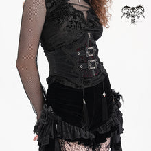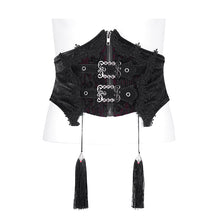 - The center front is decorated with a metal Gothic buckle, and the two sides below are decorated with tassel ribbons.