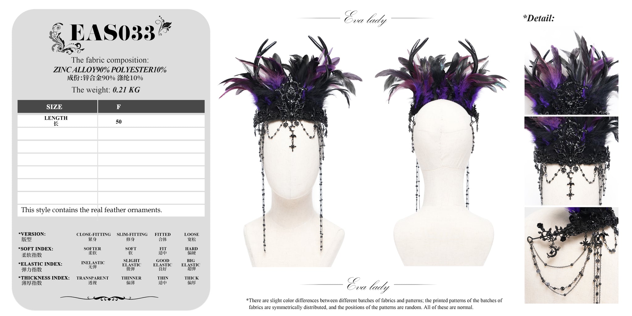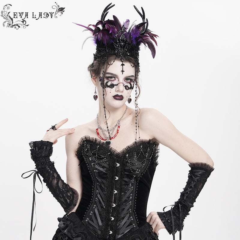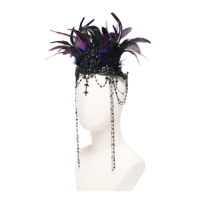 - The black tassel crown is decorated with black and purple feathers, with antlers on both sides.