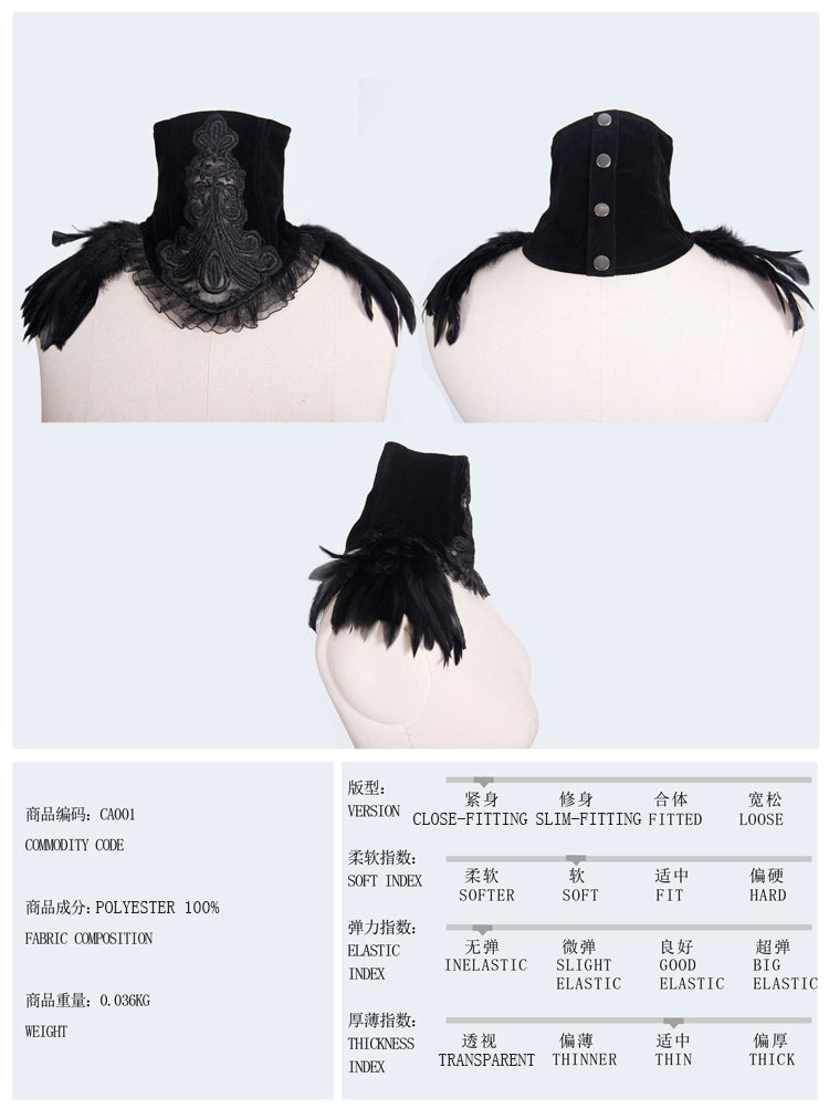 - Style:Gothic party accessory sexy women feather velveteen black high collar