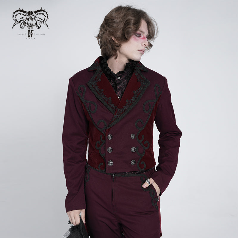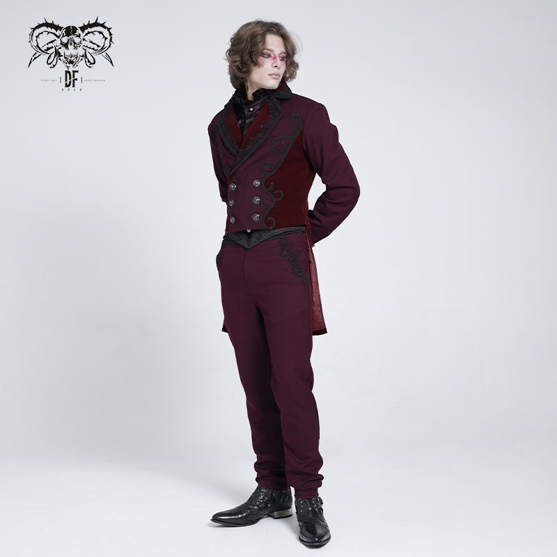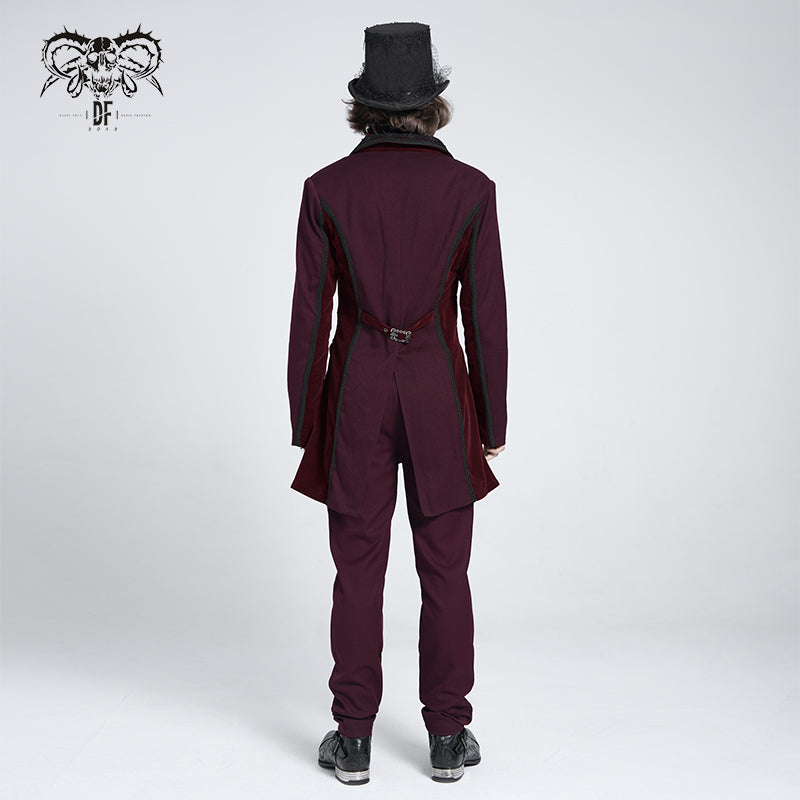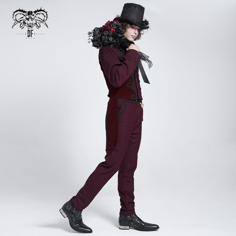 - The main fabric is made of twill suit material, stitched with dark red velveteen fabric.