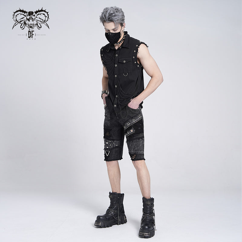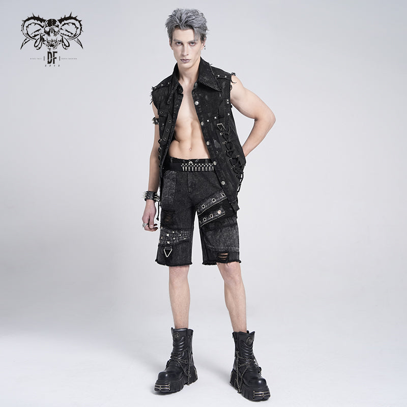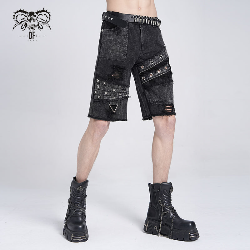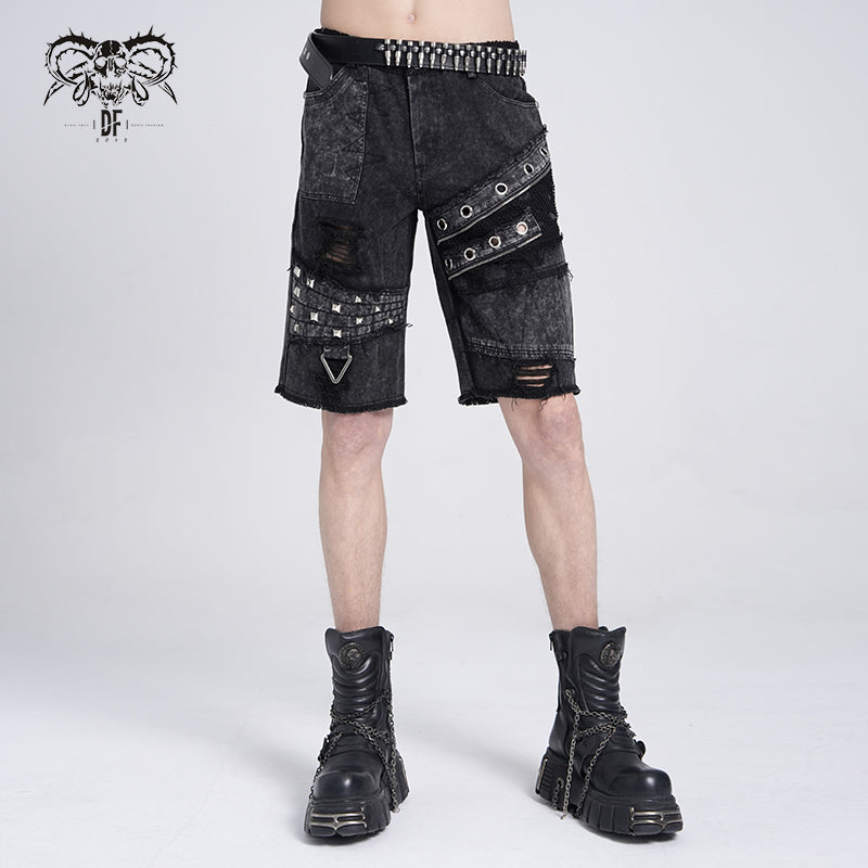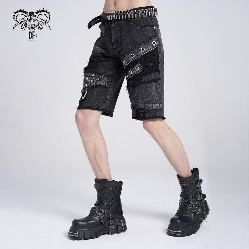 2. Style:decadence Summer punk rock men nailed ragged shorts
