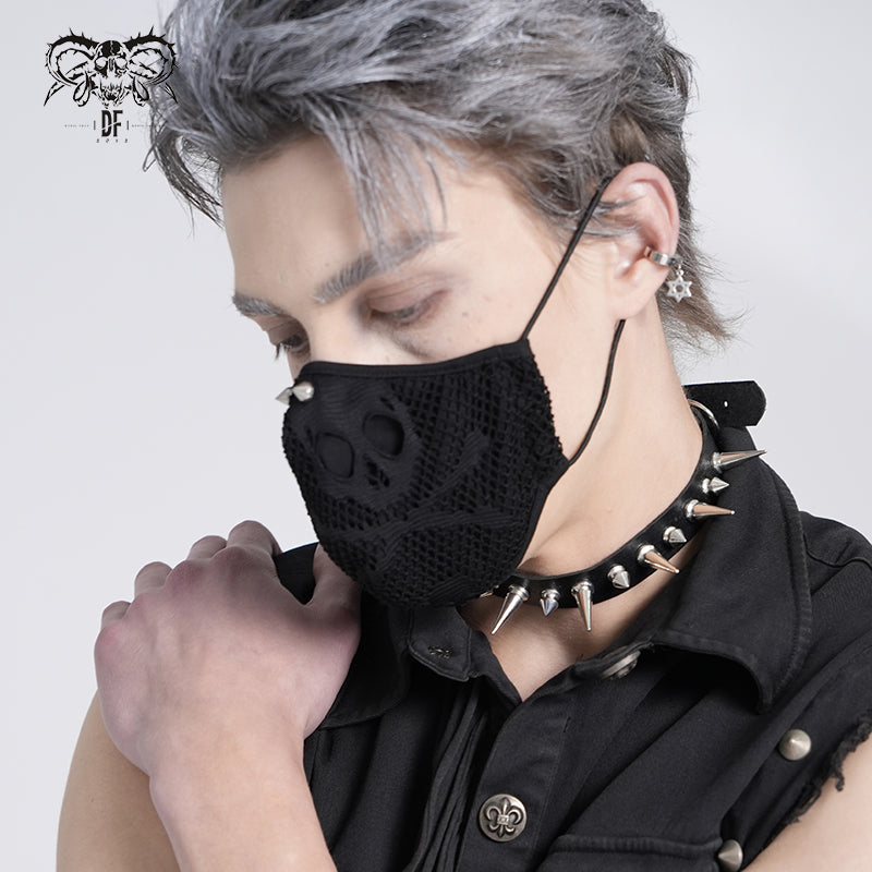 - Style:Punk skeleton printed mesh unisex nailed cotton mask