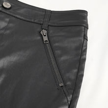 The whole piece is made of stretchy rubberized woven fabric, with nail decorations on the knees and eyelet-style cording design on both sides of the thighs.