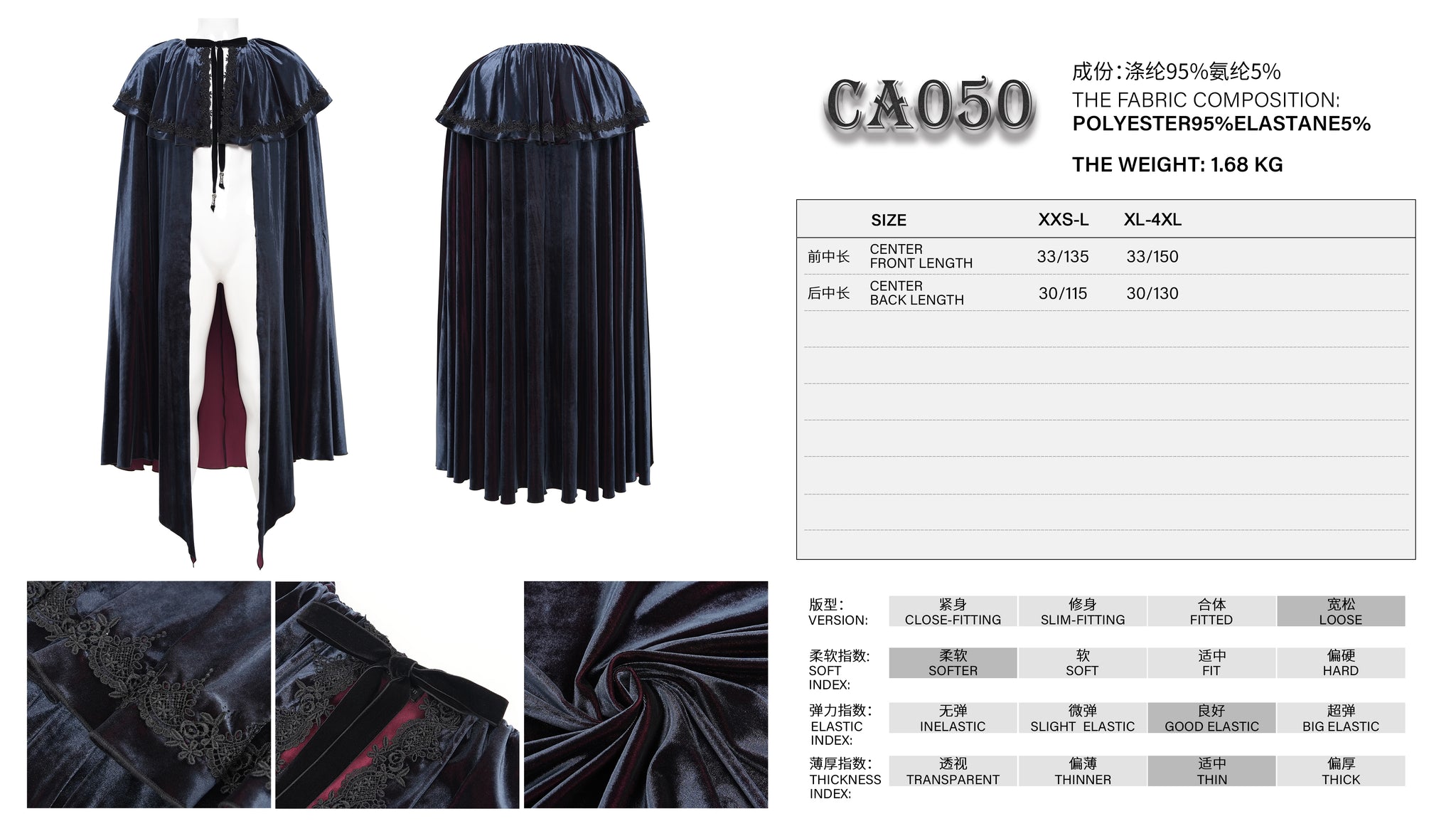 - Style:Gothic Velvet Cape