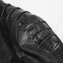 - The whole piece is made of black-gray dark fringe leather, which feels soft to the touch after water washing.