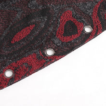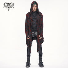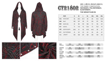 The main fabric is made of two-color plush irregular pattern knitted fabric, with short back and long front pointed hem, cuffs with finger holes, and a hooded version.chains Arranged on the back.