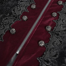 - Style: Black and red Gothic paisley jacquard fleece long coat