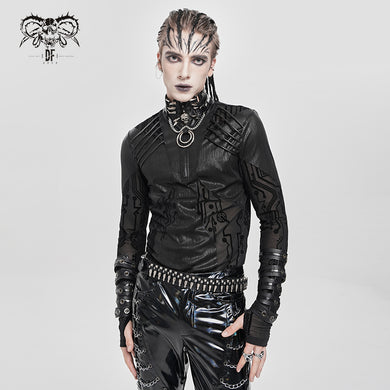 TT302 Circuit diagram flocked print stand-up collar punk T-shirt