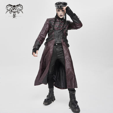 CT27002 Gothic pattern velvet long coat with multiple straps at the center front