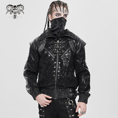 CT273 Punk hooded long-sleeved jacket with multiple straps on the front