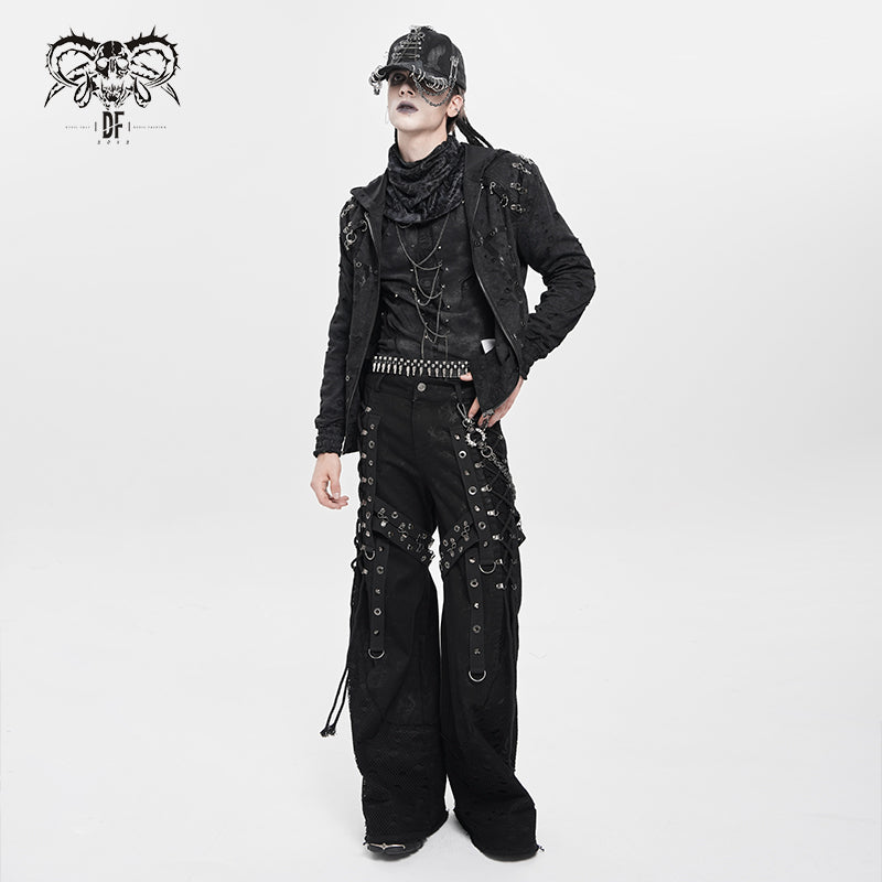 • Irregularly spaced metal accents enhance the punk-metal feel.