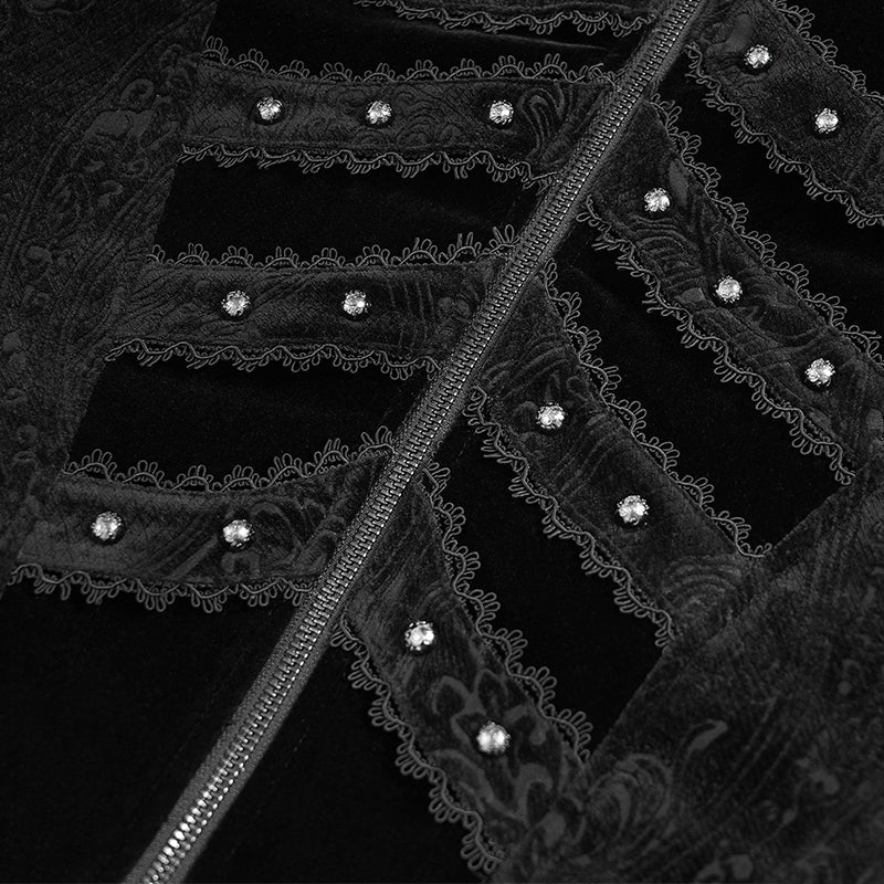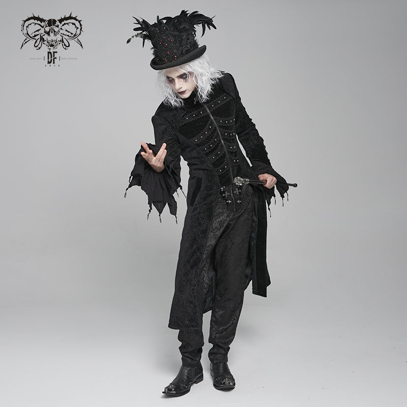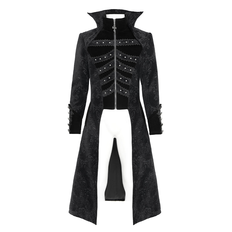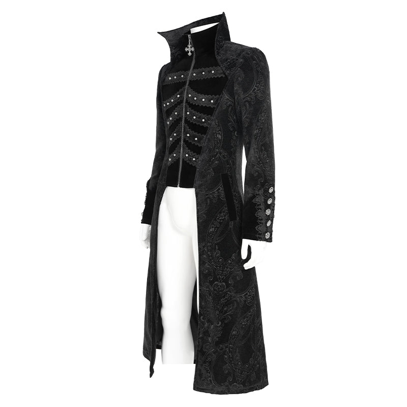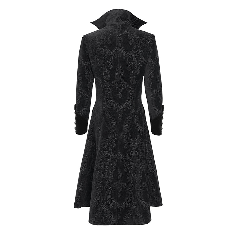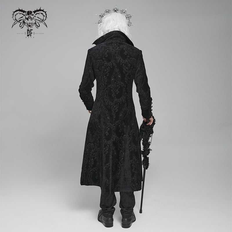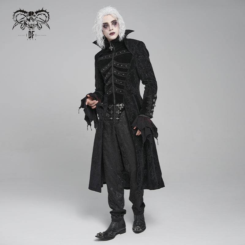 - Style:Gothic pattern velvet long coat with multiple straps at the center front