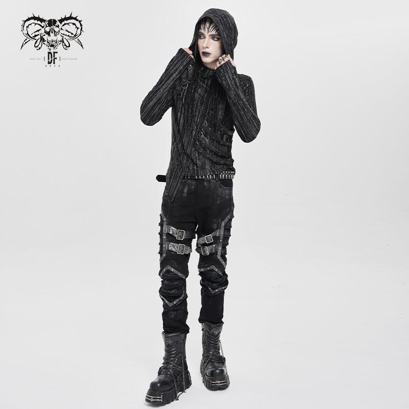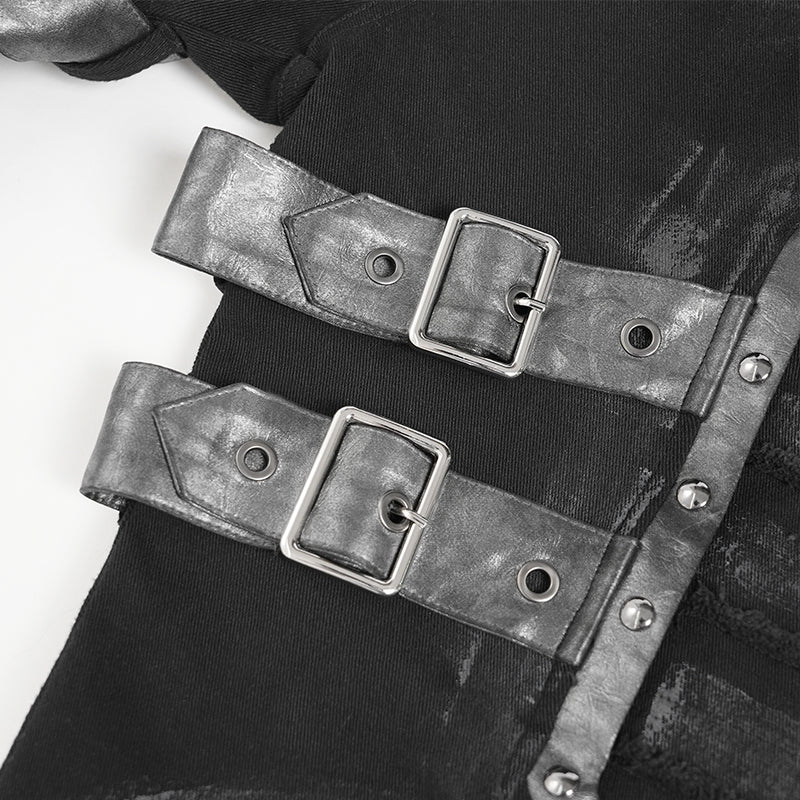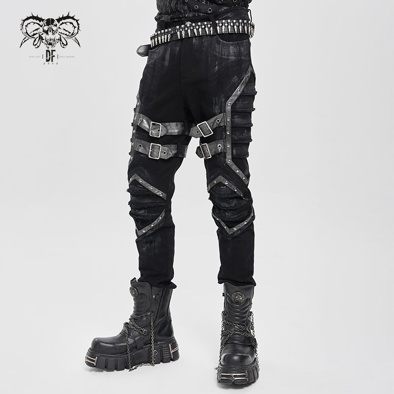 • Style:Punk trousers with hand-painted coffin-shaped thighs