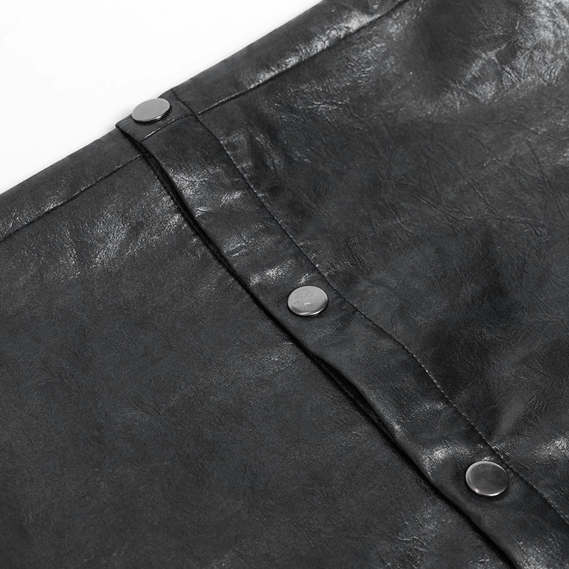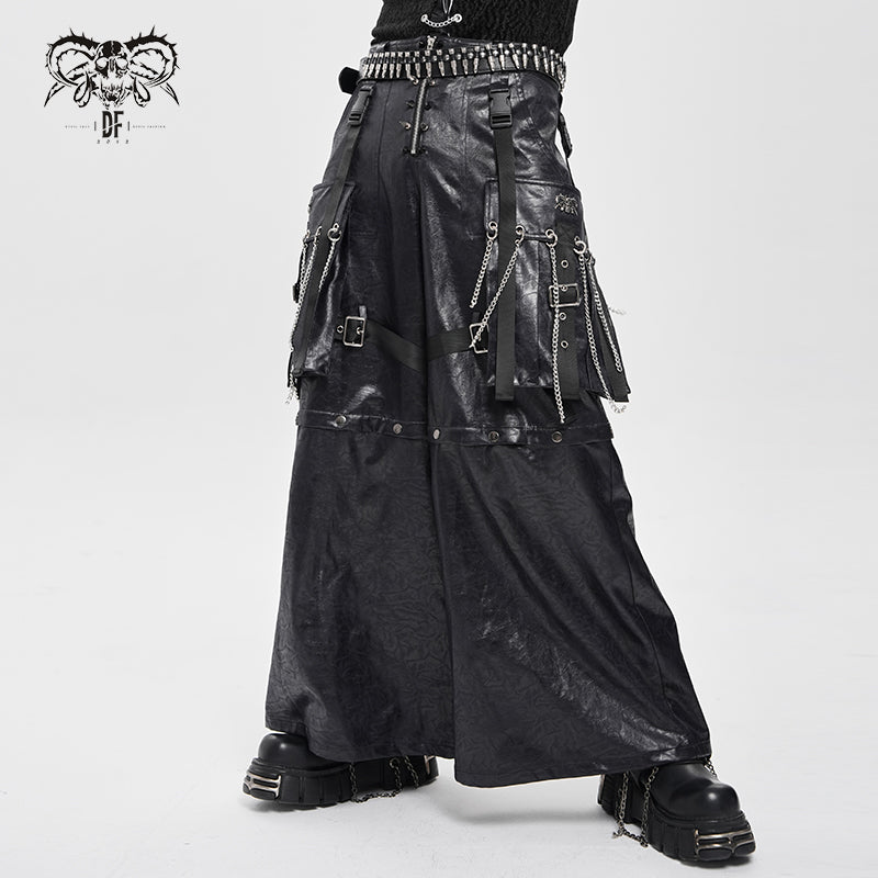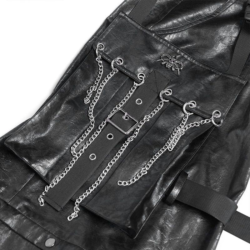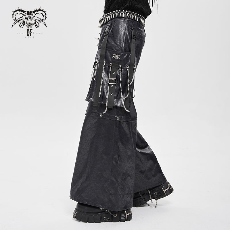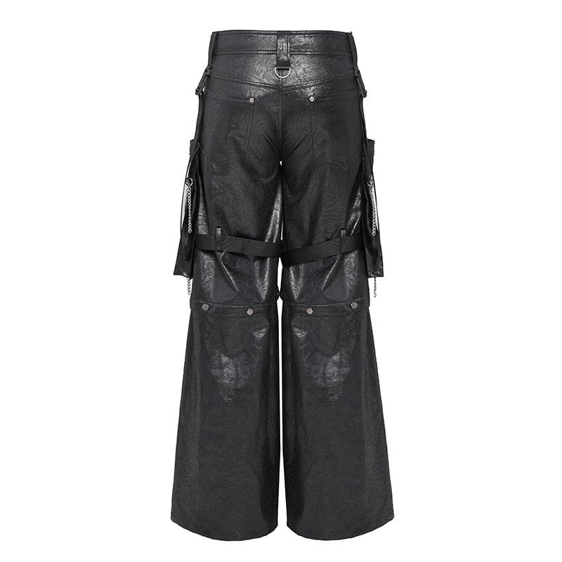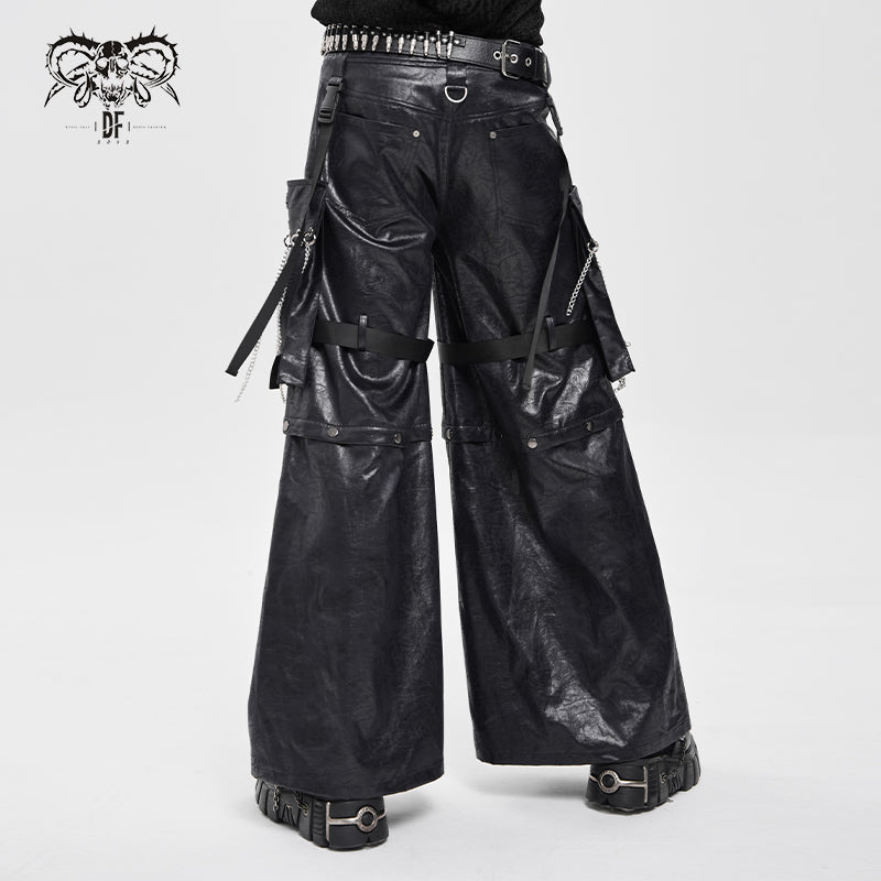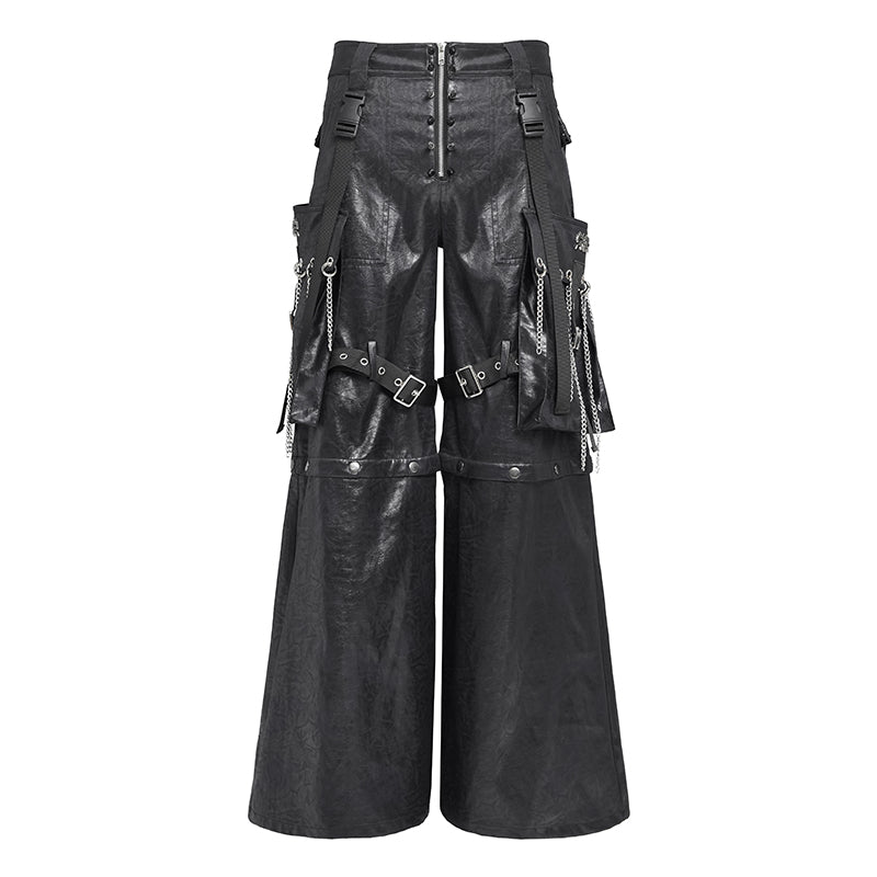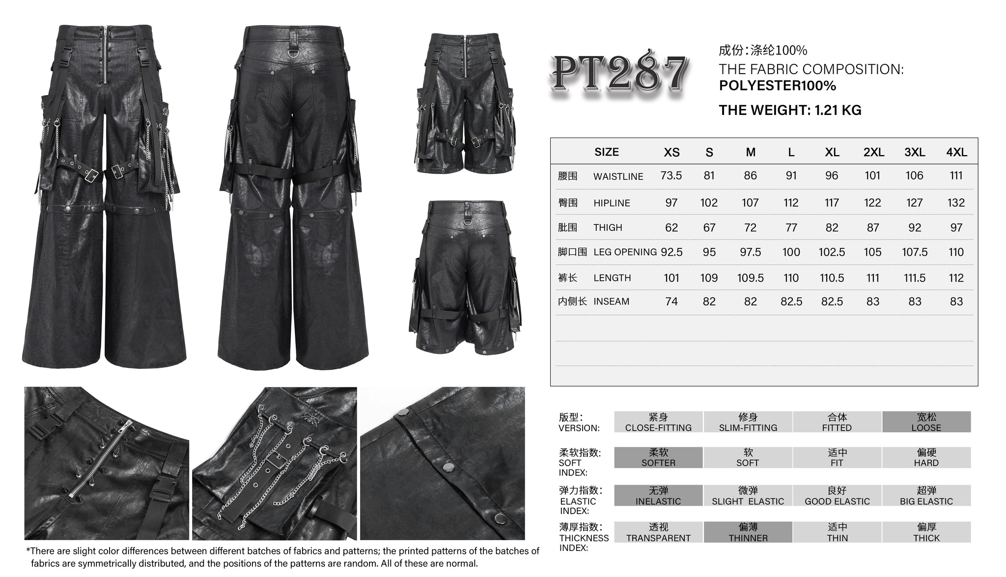 - Made entirely of pleated faux leather, these wide-leg pants feature detachable chains on both pockets, a front placket adorned with spikes, and detachable legs that can be transformed into mid-length pants.