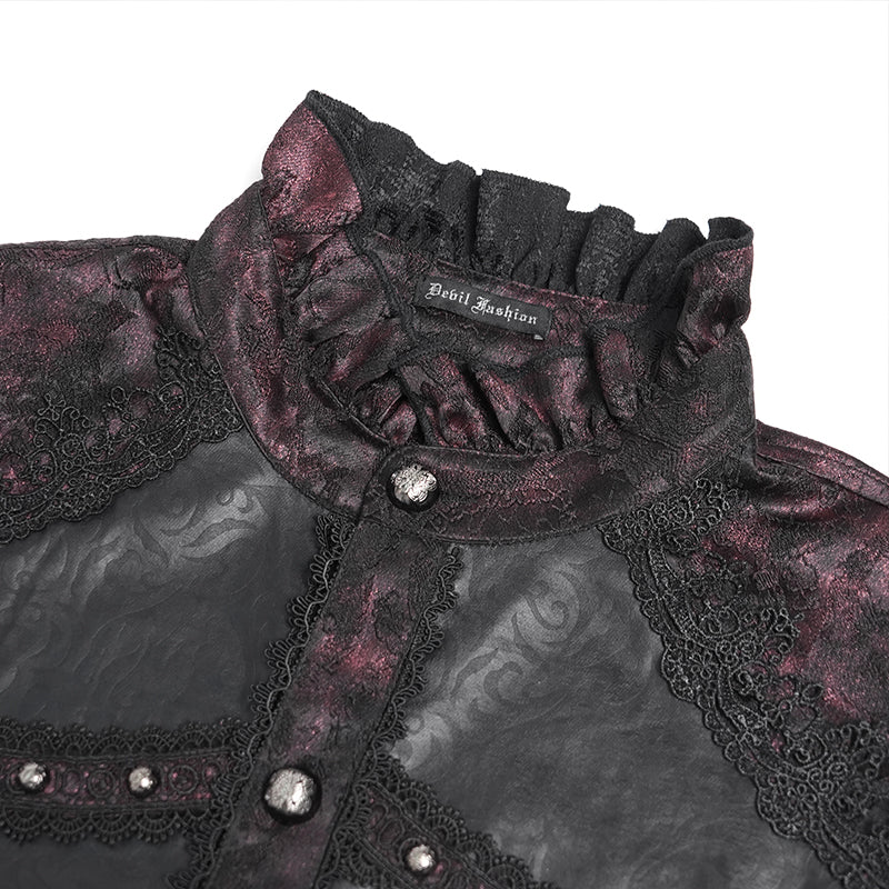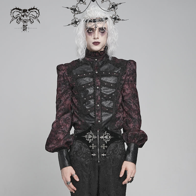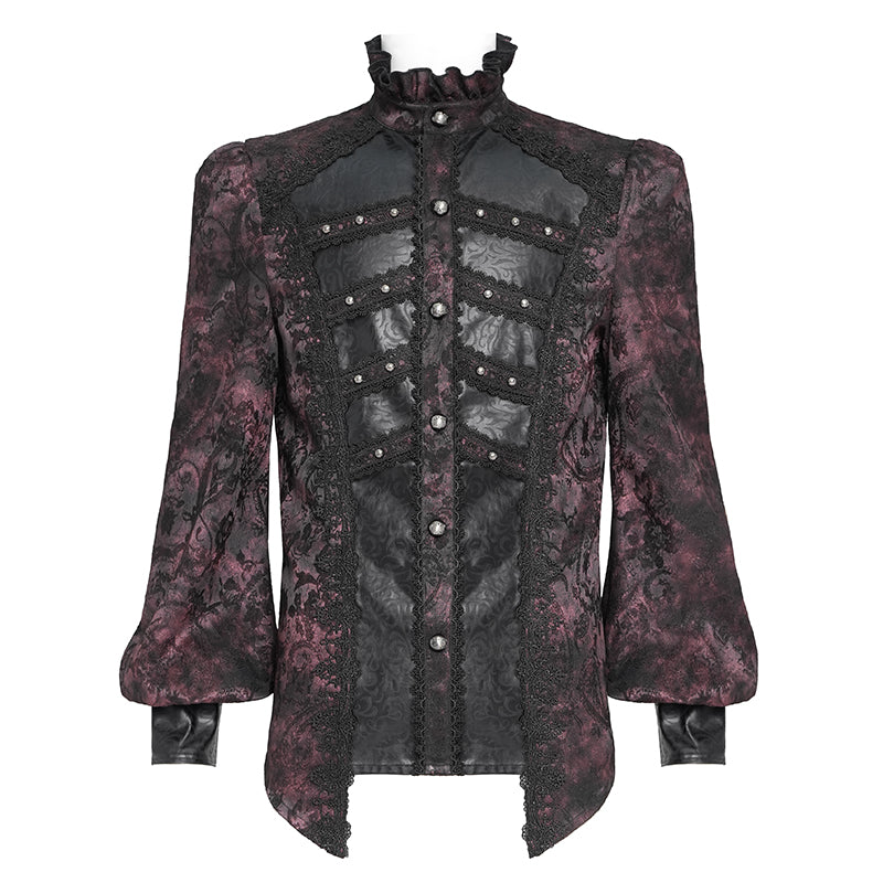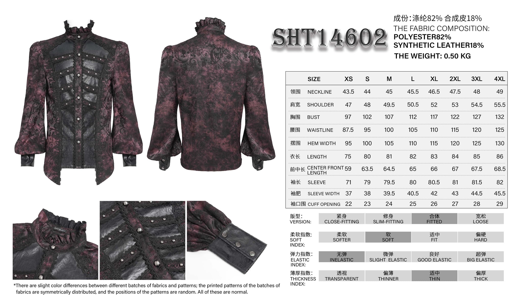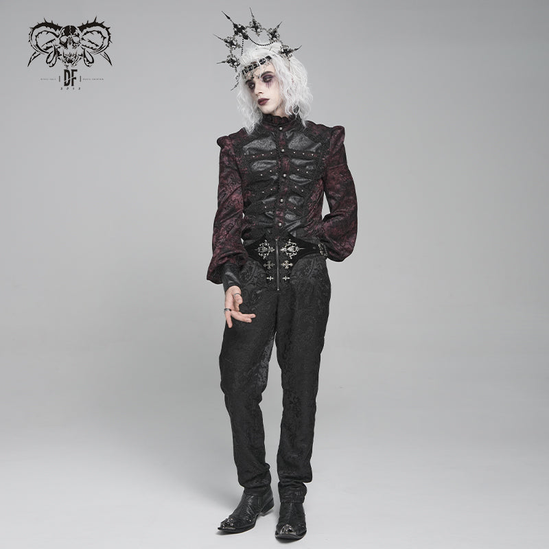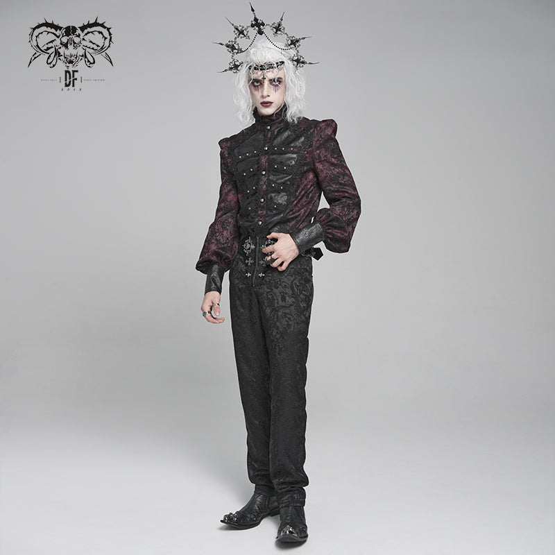 - Style:Gothic two-tone cashew jacquard long-sleeved shirt