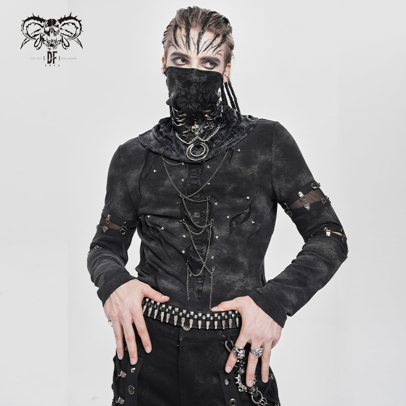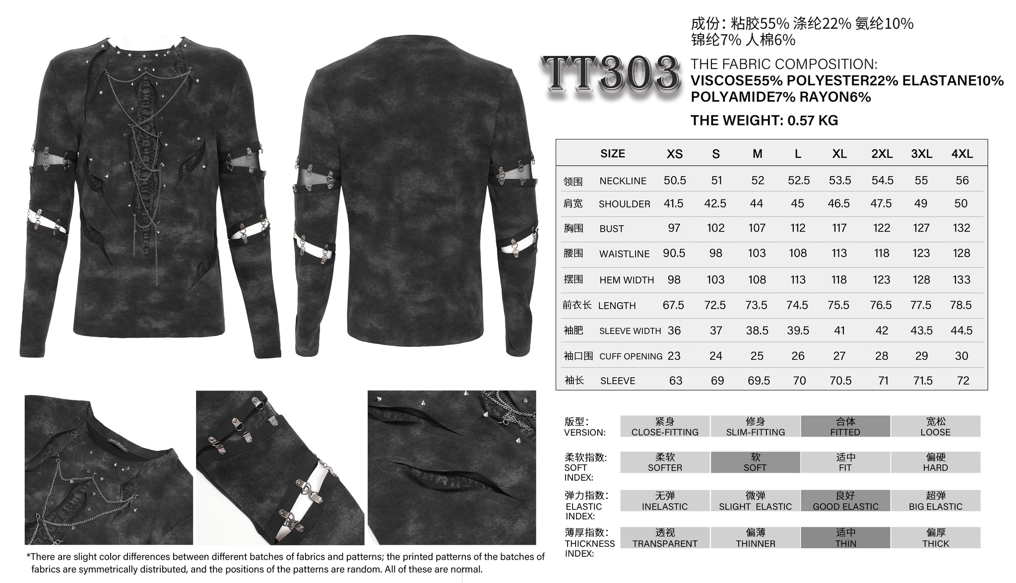 - Style:Punk super stretch brushed knit long-sleeved T-shirt
