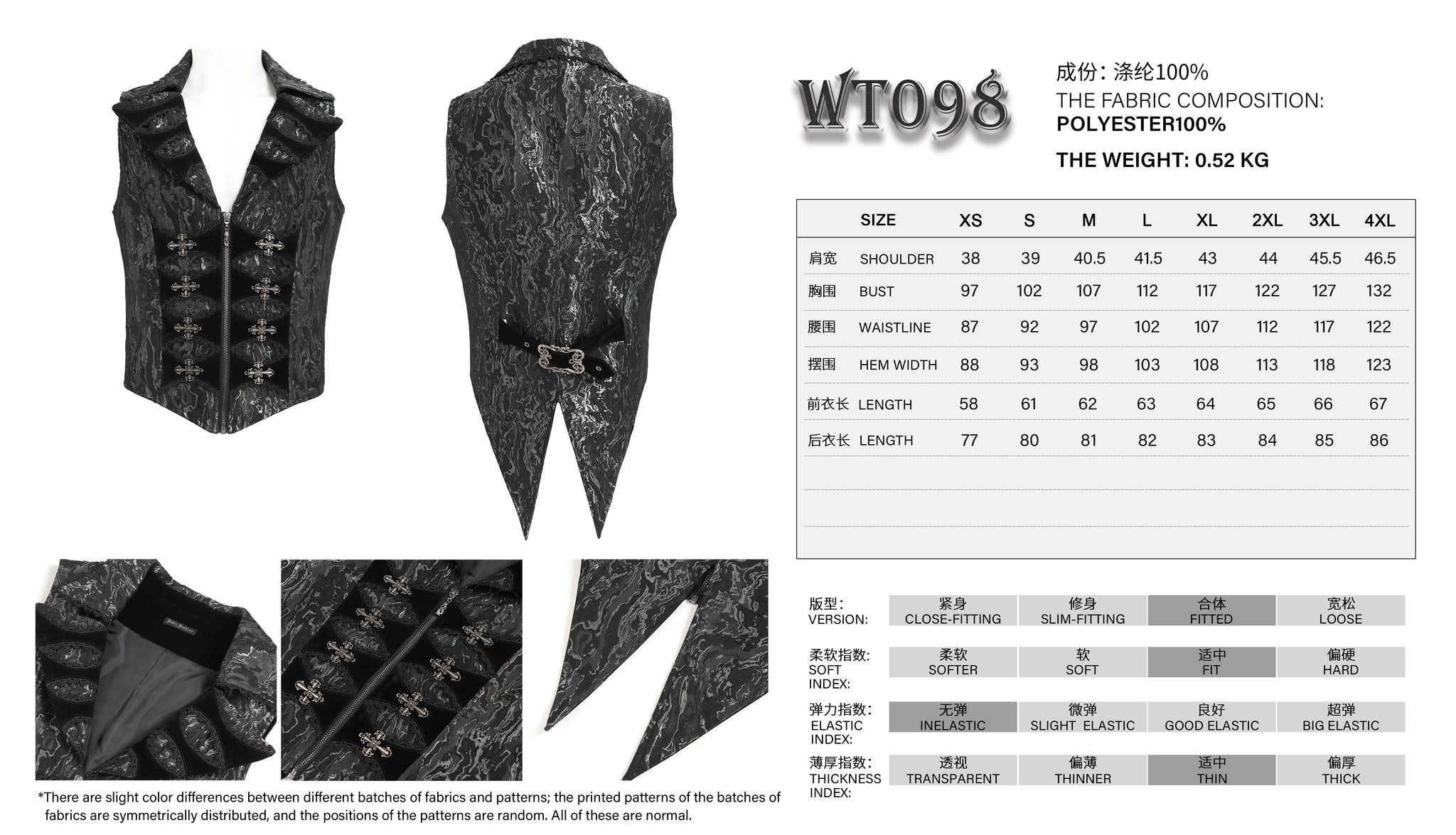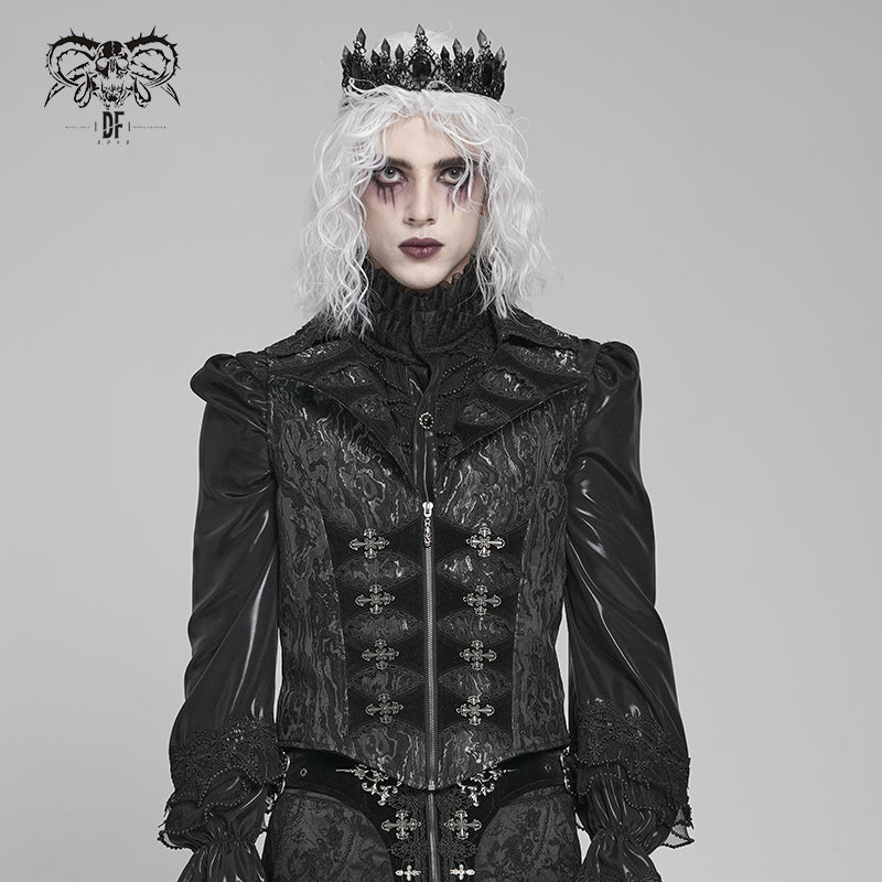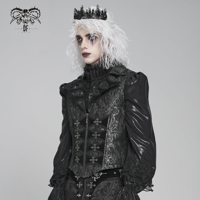 - Style:Two-tone jacquard Gothic swallowtail short vest