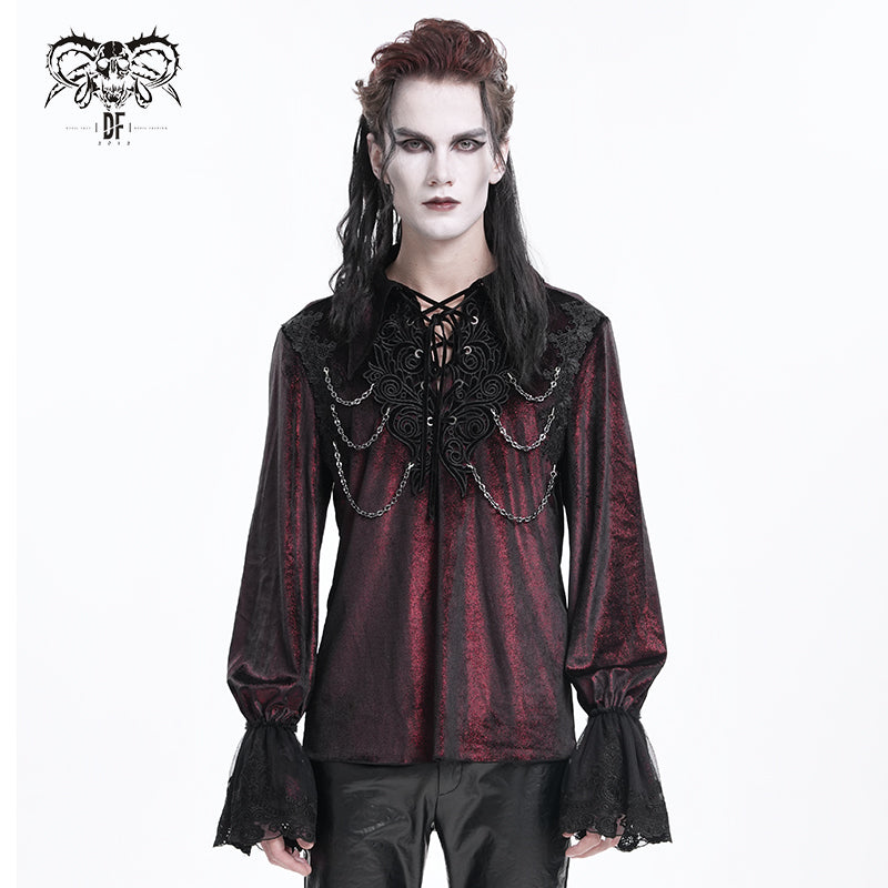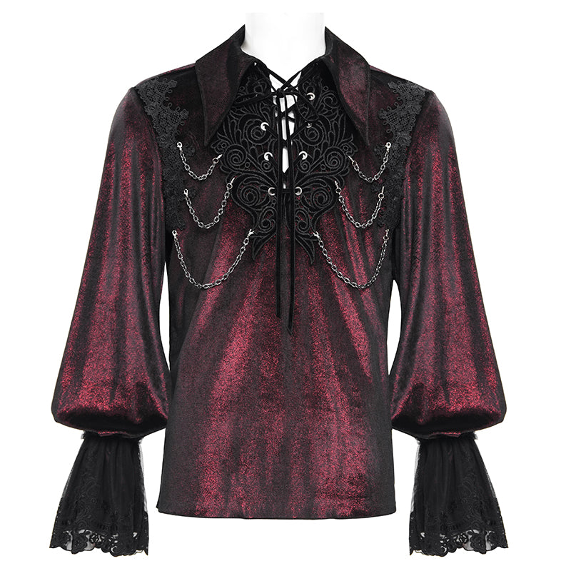 - A loose-fitting Gothic shirt made entirely of velvet, with a detachable lace and chain decoration on both sides of the center front slit.