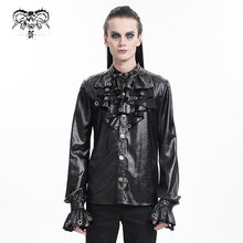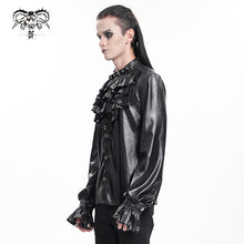 - Made of laminated shirting with a shiny leather effect, Eyelets on the cuffs and chest tie.