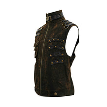 - Style:Brown steampunk high collar lace up back zipper up men waistcoat with pockets