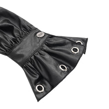- Made of laminated shirting with a shiny leather effect, Eyelets on the cuffs and chest tie.
