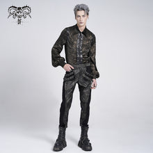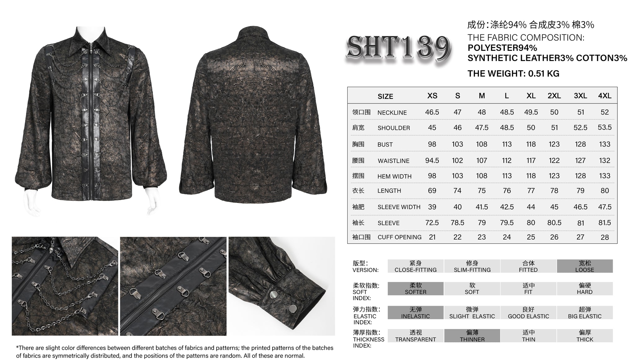 - The main fabric is made of gold stamping pleated shirt fabric, the shoulders and chest are patched with imitation leather fabric, and decorated with D-shaped buckle rivets.