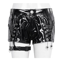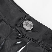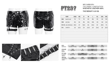 - The whole piece is made of glazed leather material, decorated with bullet on both sides of the waist, chain decoration on the thighs, and asymmetric leg loop design.
