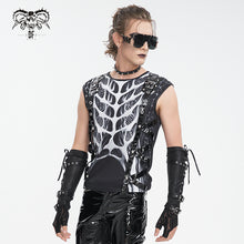 - The main material is digitally printed knitted fabric with a skeleton, and patent leather straps are used on both sides from the shoulders to the waist.