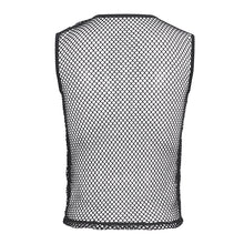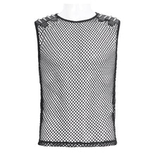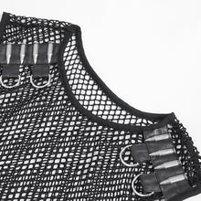 - The main material is mesh, with a sleeveless mesh T, and the shoulder loops are decorated with metal.