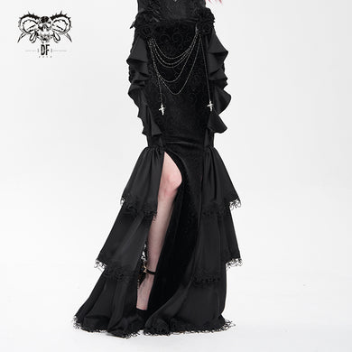 SKT23601 Black Gothic embossed velvet fishtail skirt