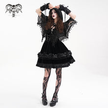 - The entire piece is made of spider web material, with a bat-shaped design, tassel lace decoration on the edges, three-dimensional lace decoration in the center front, and an adjustable tie rope.
