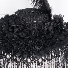 - The hat is made of worsted hat body, with rose lace, lace decoration on the top, beads and tassels on the edge, and the lower layer is separated by long lace tassels.