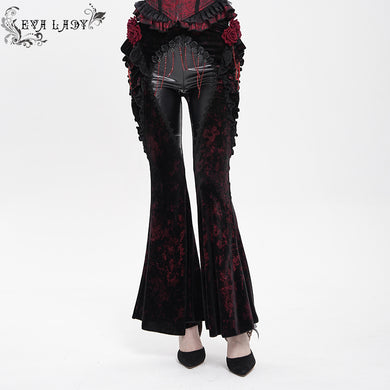 • EPT01902 Black and Red Gothic velvet and lace flared trousers