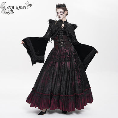 • ESKT07002 Wine Gothic 3D velvet flower pattern skirt with corset