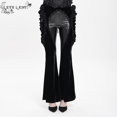 • EPT01901 Black Sexy Women Gothic velvet and lace flared trousers