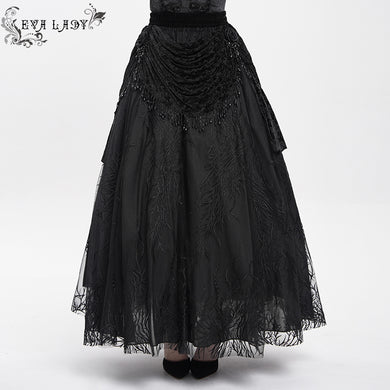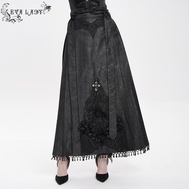 • SKT23001 Black Women Gothic Rose Jacquard Skirt