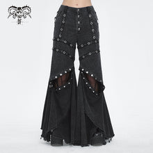 - Style:Punk black gauze with stretchy gauss big rhombus mesh women flared trousers