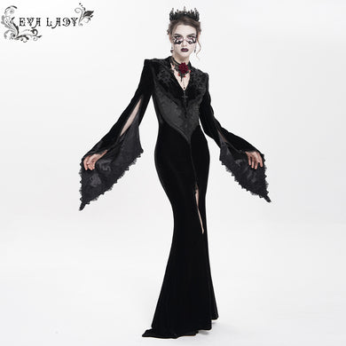 ECT02201 Slim-fit velvet long coat with slit sleeves