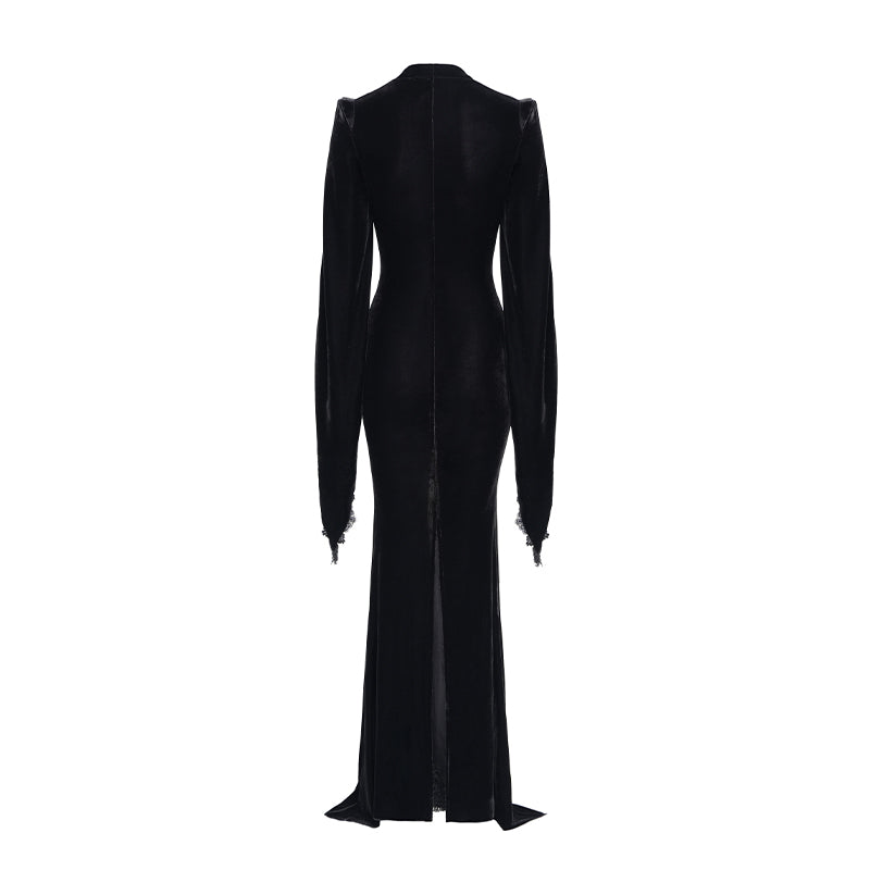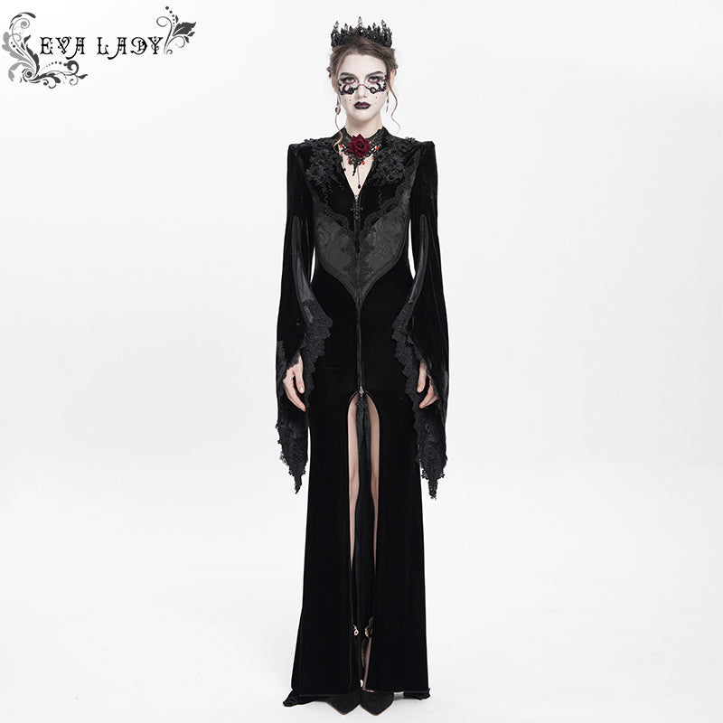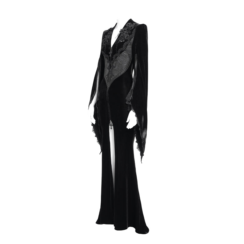 - Style:Slim-fit velvet long coat with slit sleeves