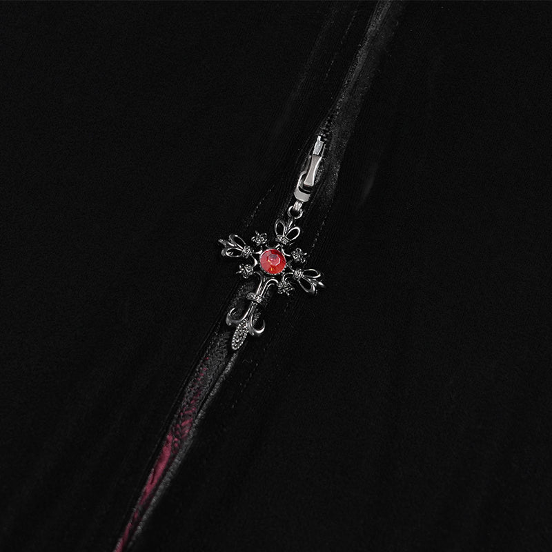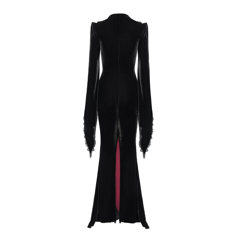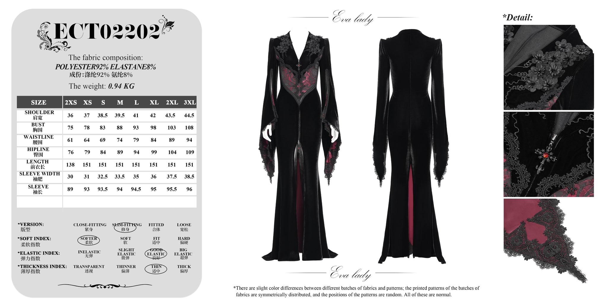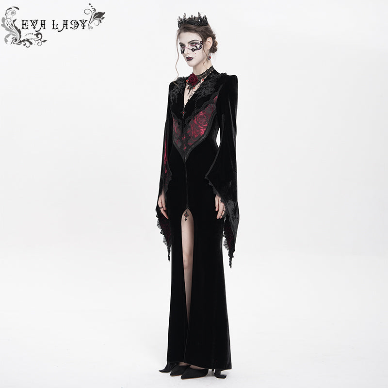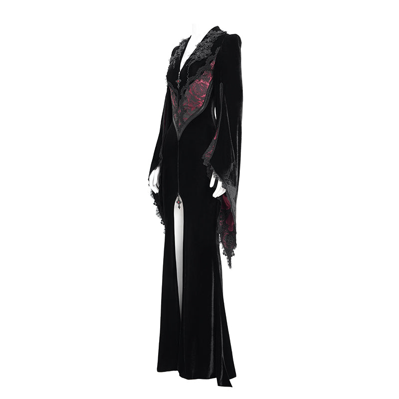 - Style:Black and red Slim-fit velvet long coat with slit sleeves