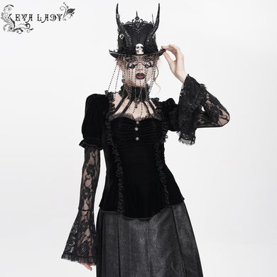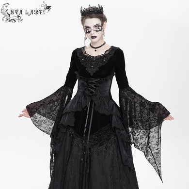 ETT039 Gothic Women Velvet and Burnt-out Mesh Long Sleeve T-Shirt