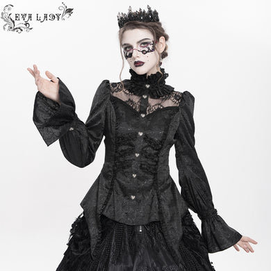 SHT14201 Black Love-shaped Jacquard Gothic Shirt