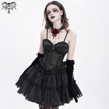 - The main material is rose jacquard, with pleated design on the chest and three-dimensional lace decoration under the chest, ruffle decoration design on both sides, zipper in the front center for easy putting on and taking off, and a rope in the back to adjust the tightness.