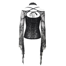 - Style:Flocked knitted off-shoulder halter neck long-sleeved short T-shirt