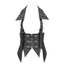 - The whole piece is made of cracked imitation leather, the chest loops can be adjusted in length, the collar is detachable, and it can be used as a vest or corset.