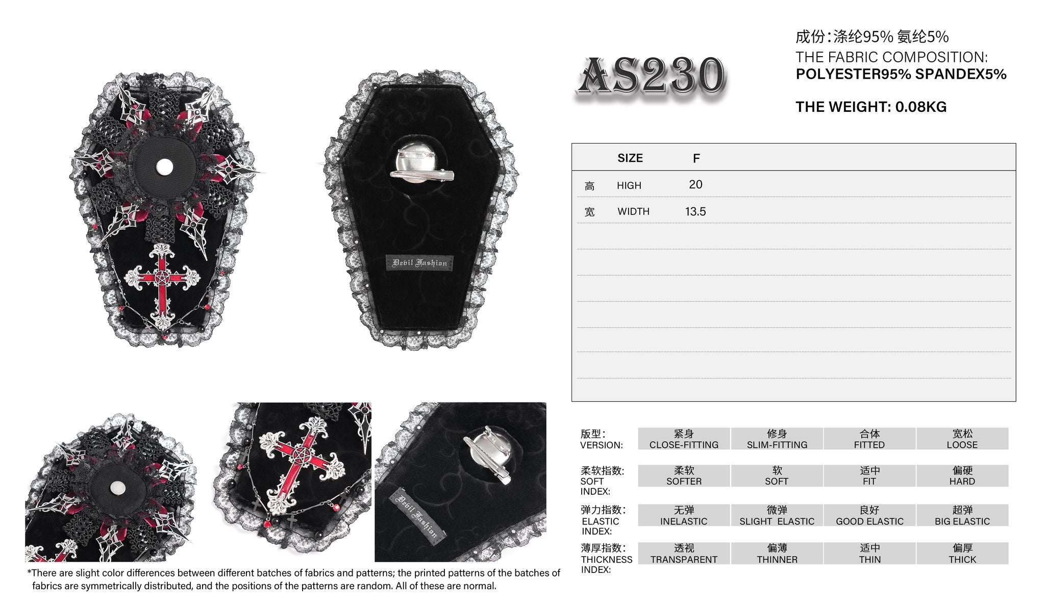 • Fabric:POLYESTER95% SPANDEX5%