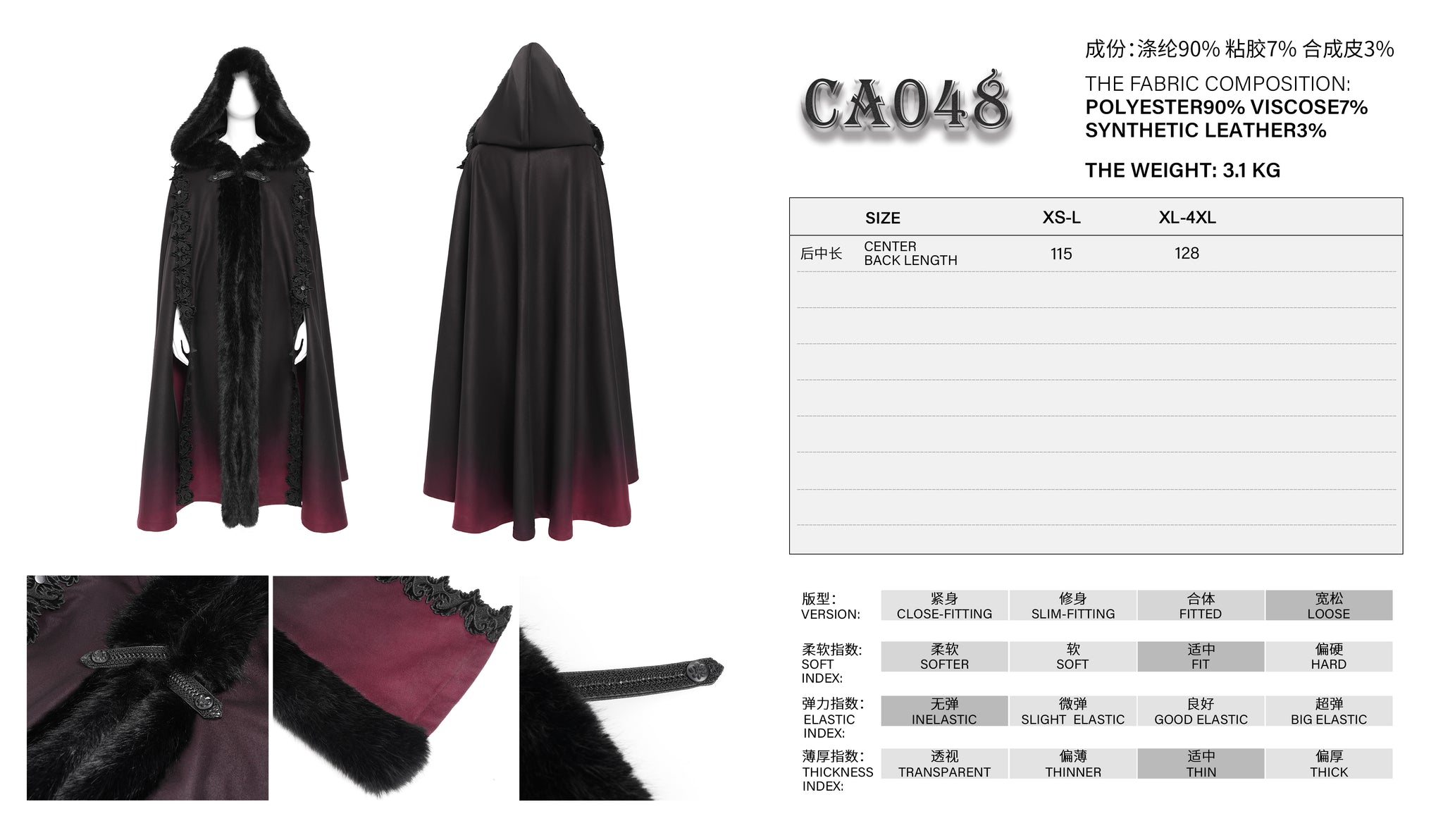 - Style:Gothic black and red gradient long shawl