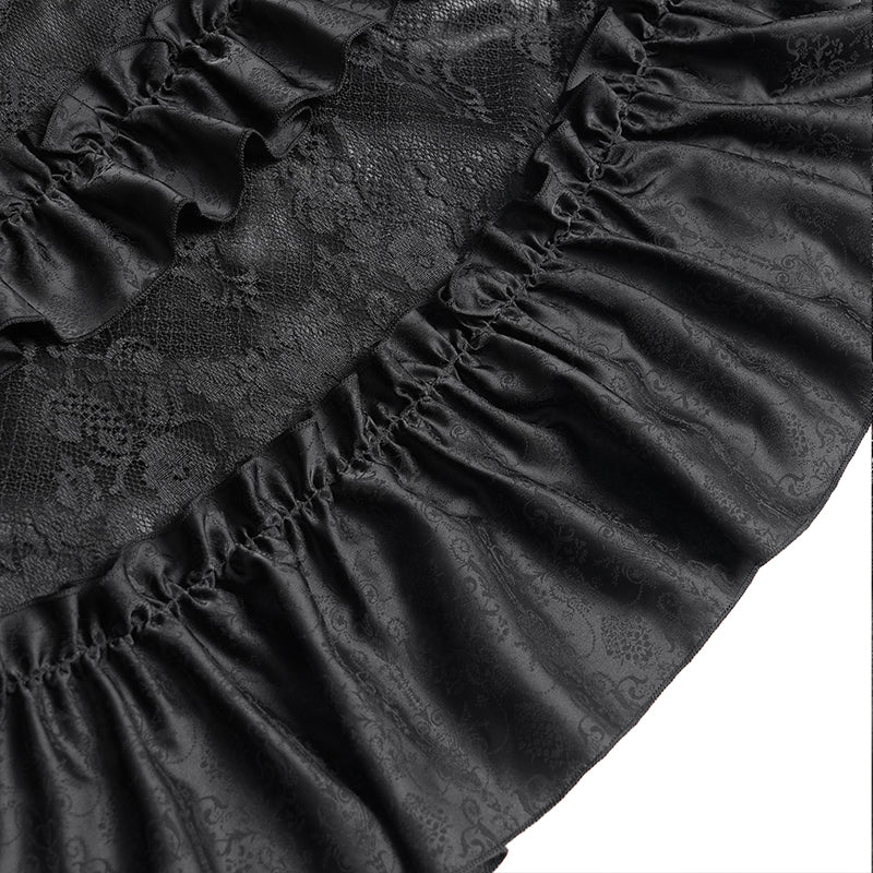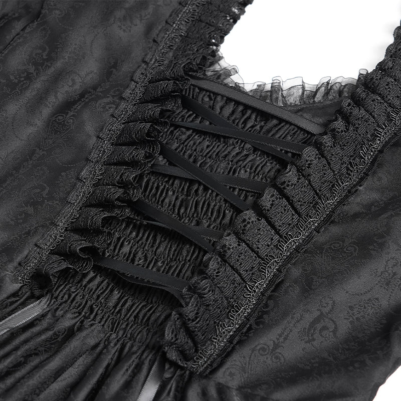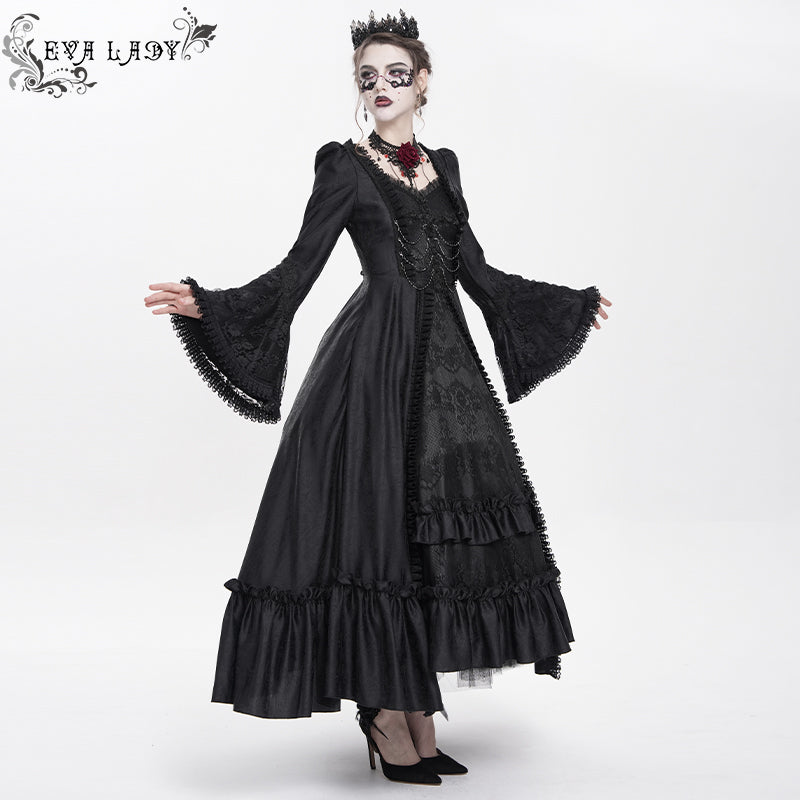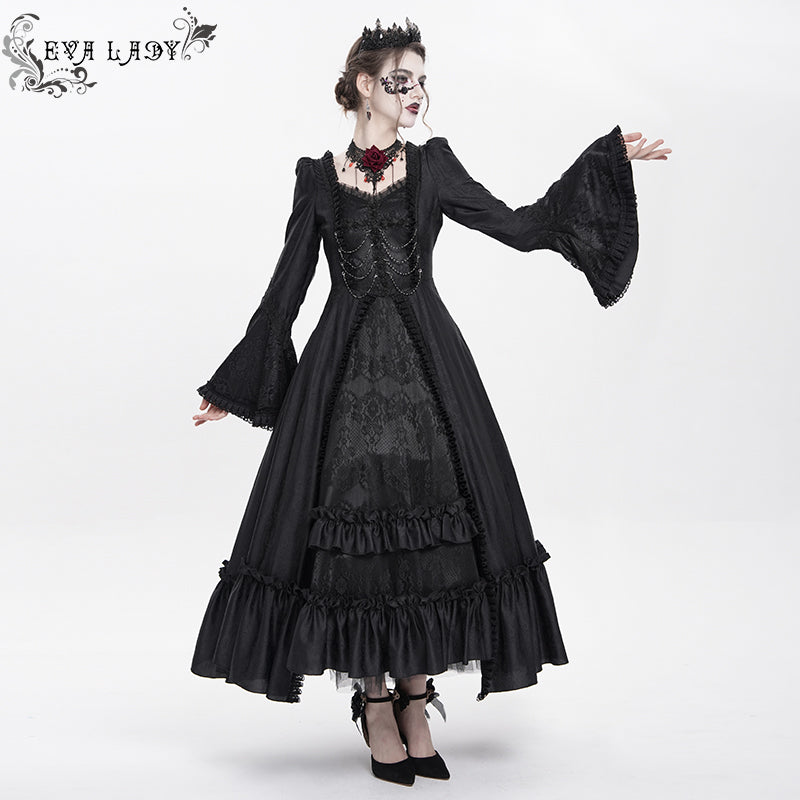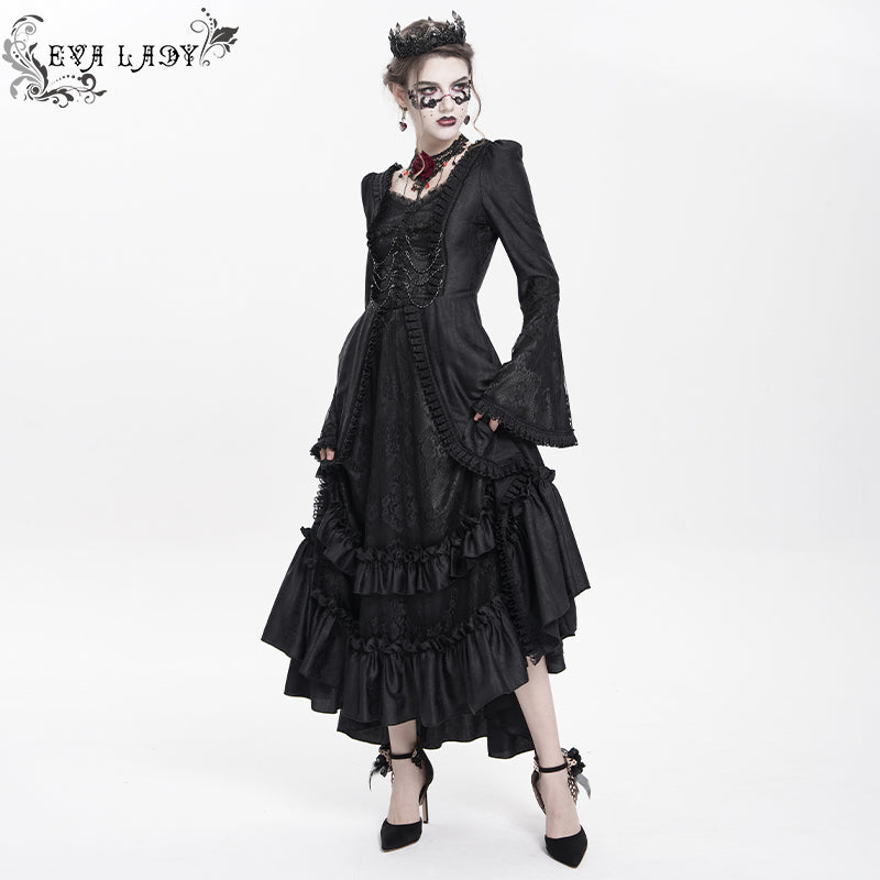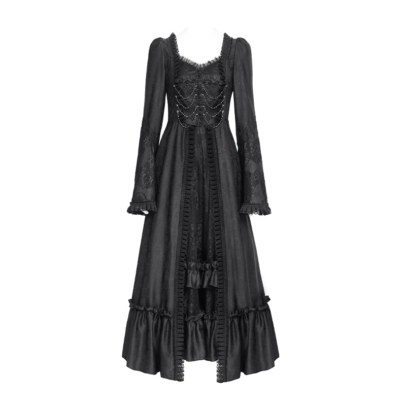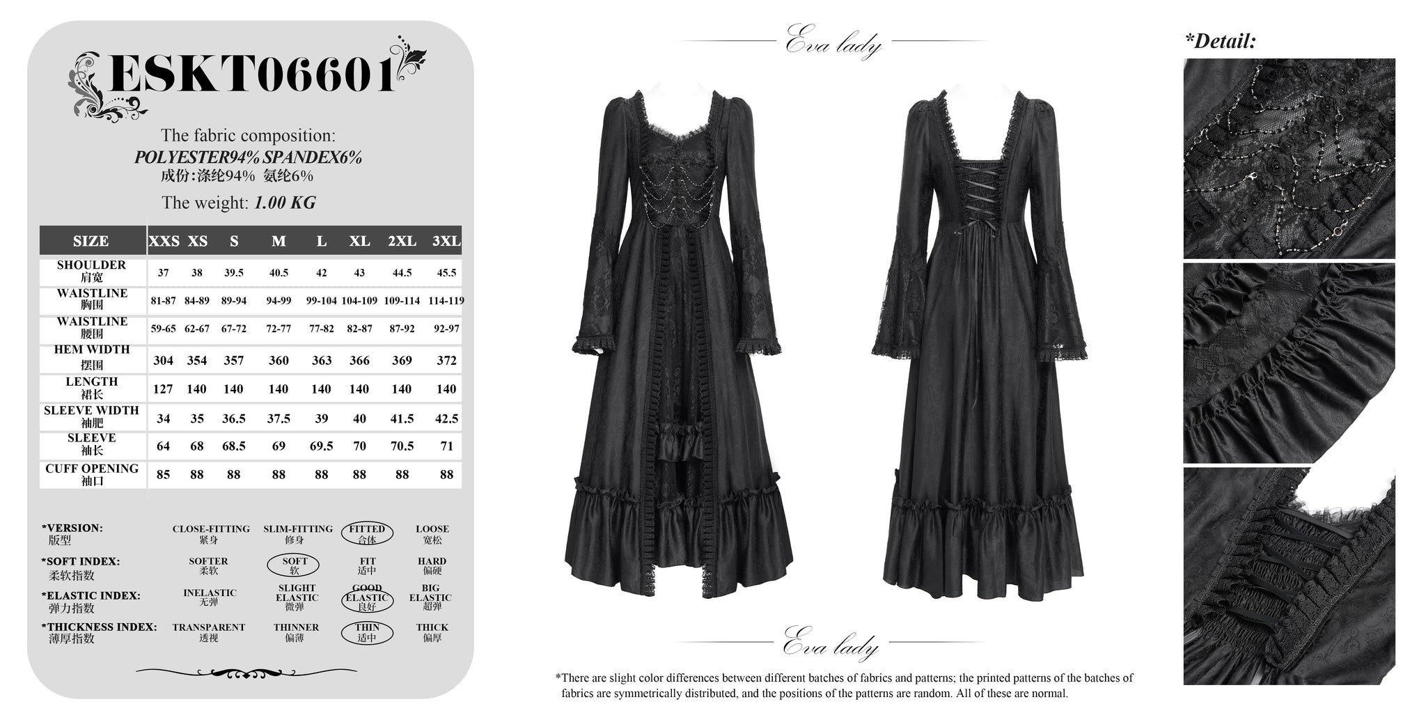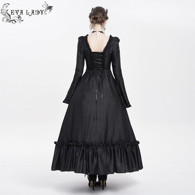 - This retro palace-style dress is crafted from Gothic jacquard fabric with solid-colored accents at the center waist, sleeves, and hem.